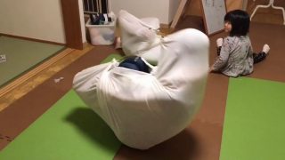 美女の全身を石膏と包帯で固めて“ミイラ”にしてしまいます。ギプスをつけられた彼女は完全に身動きが取れなくなって、担架で運ばれていきました。